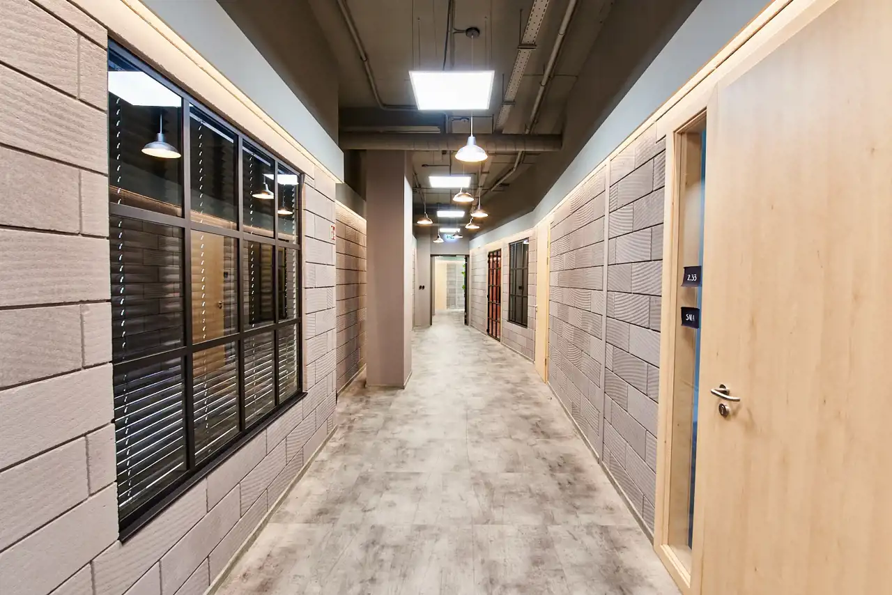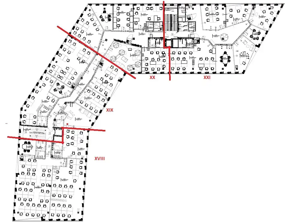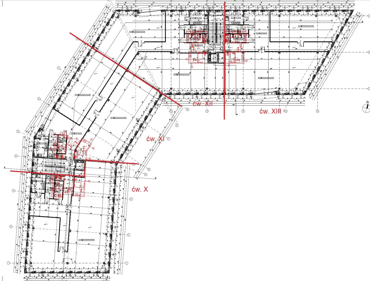 Budynek ma dwie niezależne klatki schodowe, w wyniku czego każde z pięter składa się z czterech niezależnych lokali - możliwość kupna dodatkowych powierzchni na pietrach: 1,2 lub 3,