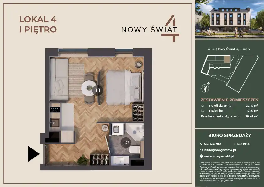 - Charakterystyka mieszkania 25.41 m2, 1 pokój