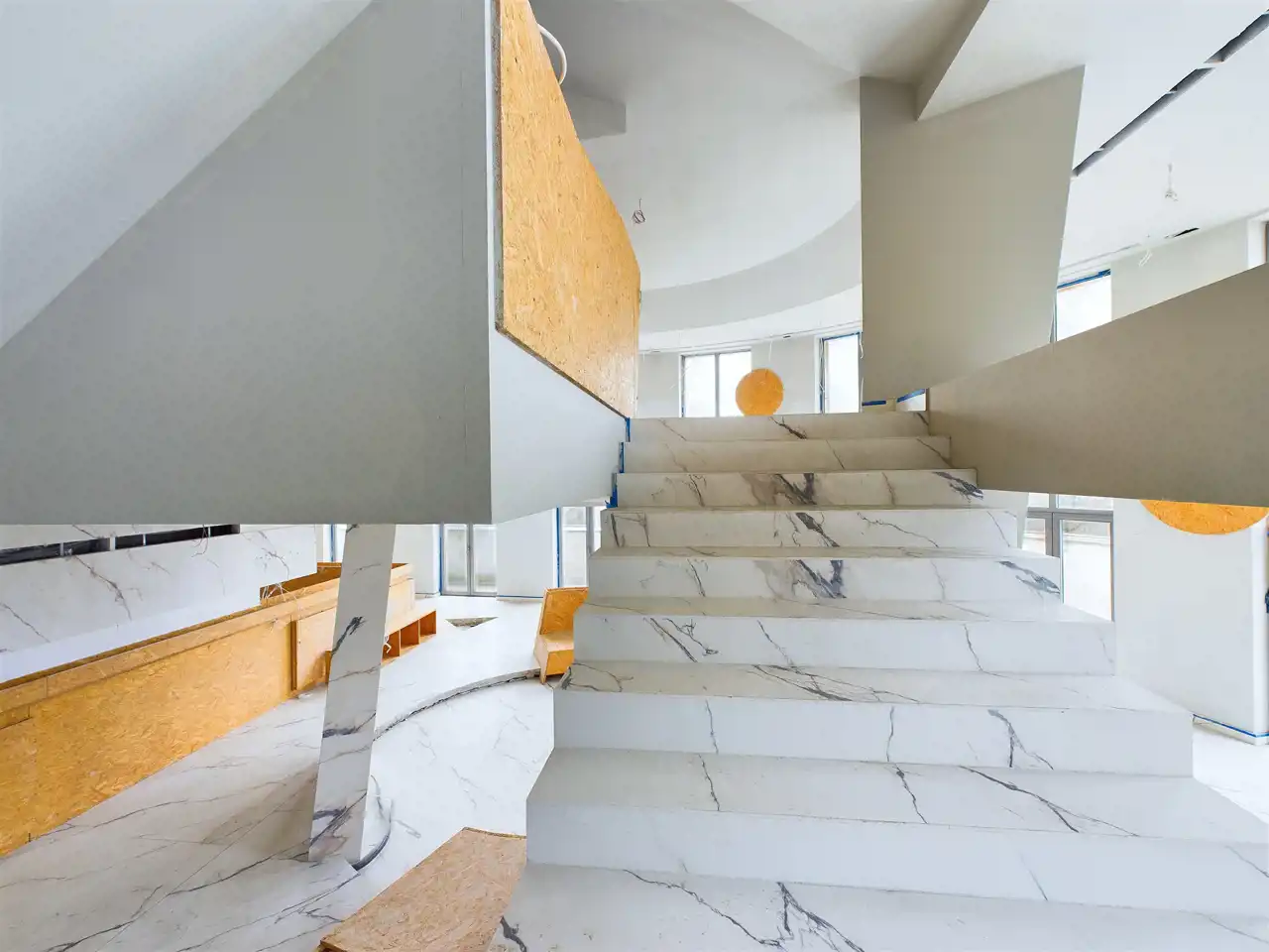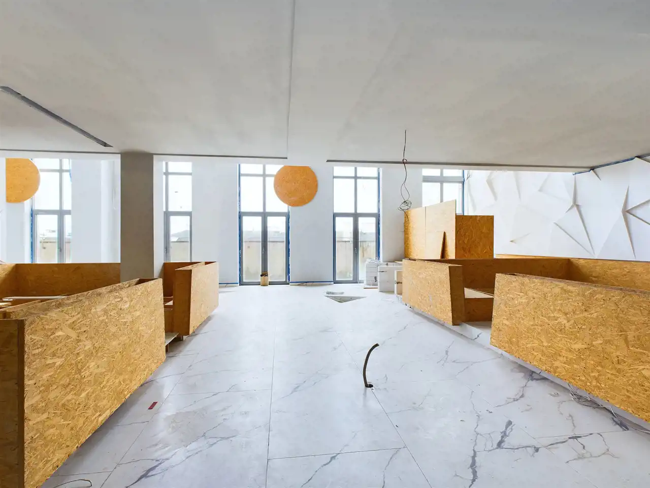 Lokal zachwyca wykończeniem z marmuru. Duże przeszklenia nie tylko optycznie powiększają przestrzeń, ale również wpuszczają naturalne światło.