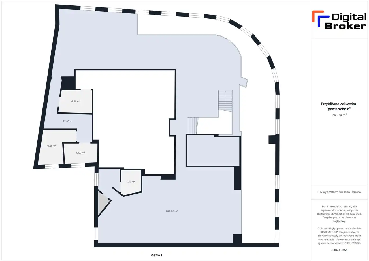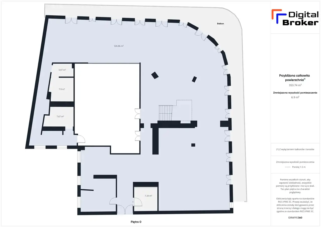 Nieruchomość znajduje się na 5. piętrze oraz antresoli o łącznej powierzchni 571 m² wraz z przynależnym tarasem oraz wyjściem na dach o powierzchni 262,41 m2.