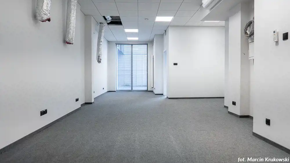 Lokal biurowy w apartamentowcu przy ul. 3 MAJA 7. Pomieszczenie biurowe o pow. 47m2, pomieszczenie socjalne 2,41m2, toaleta. Nadaje się do prowadzenia działalności gospodarczej (biura rachunkowego, fryzjerstwo, kosmetyka, kancelarii prawniczej itp.). W lokalu: klimatyzacja, wentylacja mechaniczna, światłowód. Sufit podwieszany dźwiękochłonny. Rozłożona jest też sieć LAN. W budynku 24h recepcja, ochrona, monitoring, cichobieżne windy.