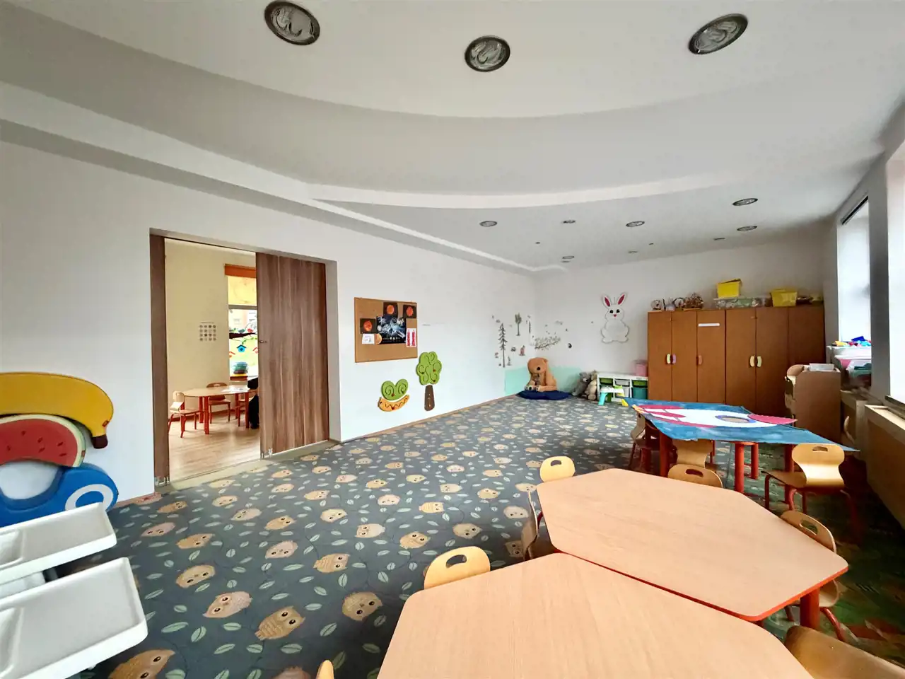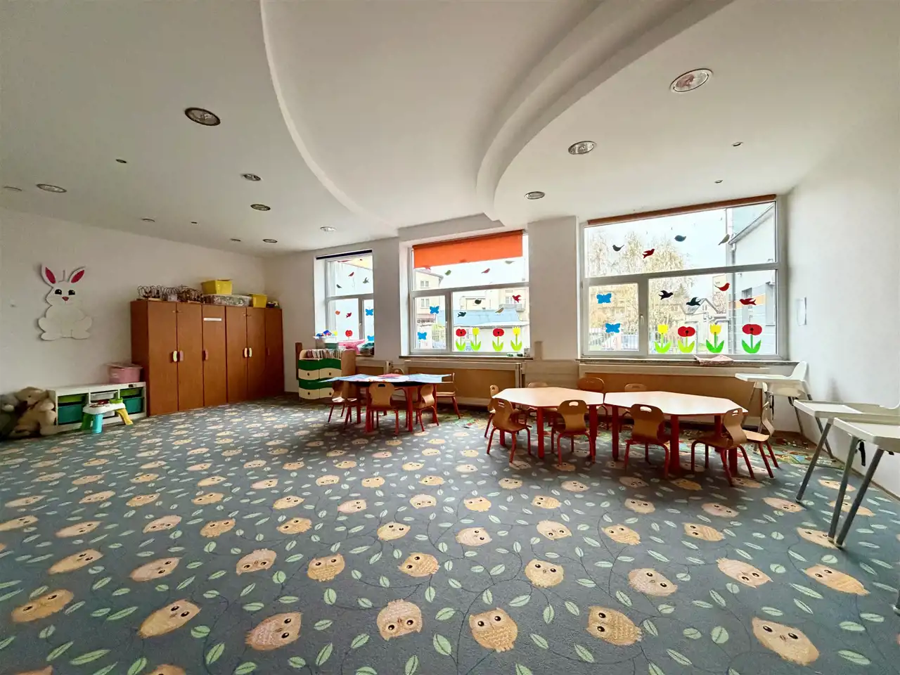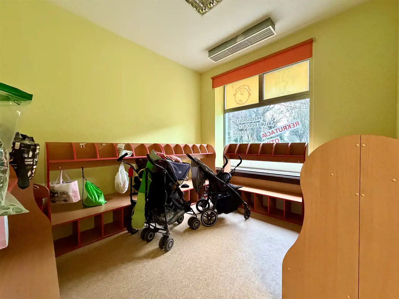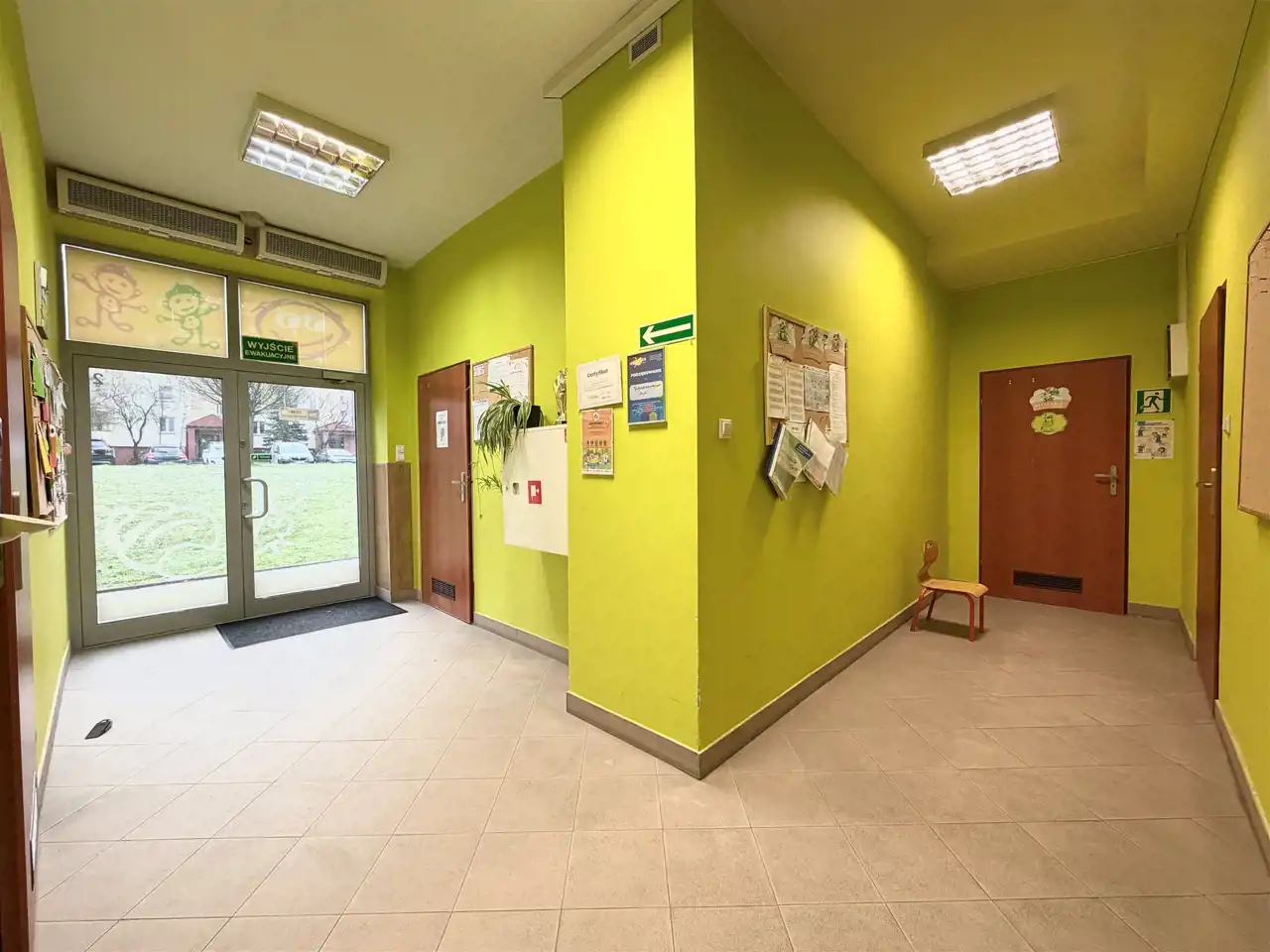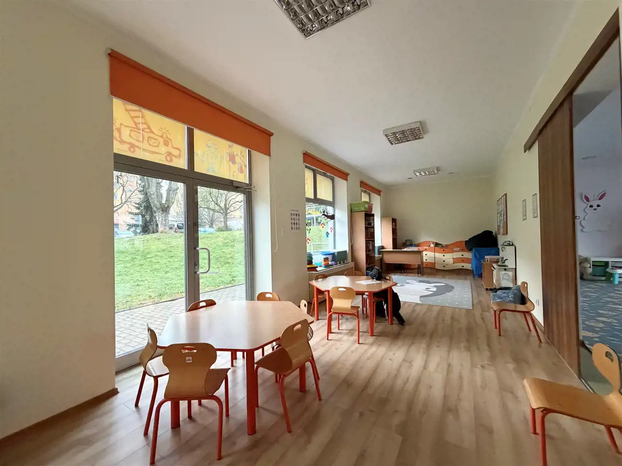 Lokal na kształt prostokąta, rok budowy 2012, możliwość zagospodarowania przestrzeni zgodnie z planowaną działalnością. Trzy wejście od ulicy, duże przeszklone witryny sprawiają ze lokal jest jasny. W pobliżu lokalu duży parking samochodowy. W lokalu był prowadzony żłobek i przedszkolem, możliwość kontynułowania działaności. Duży lokalu umożliwia przystosowanie pod każda działaności w tym medyczna, do lokalu przynależy dodatkowy plac, który może pełnić funkcje ogródka lub dodatkowego parkingu.
