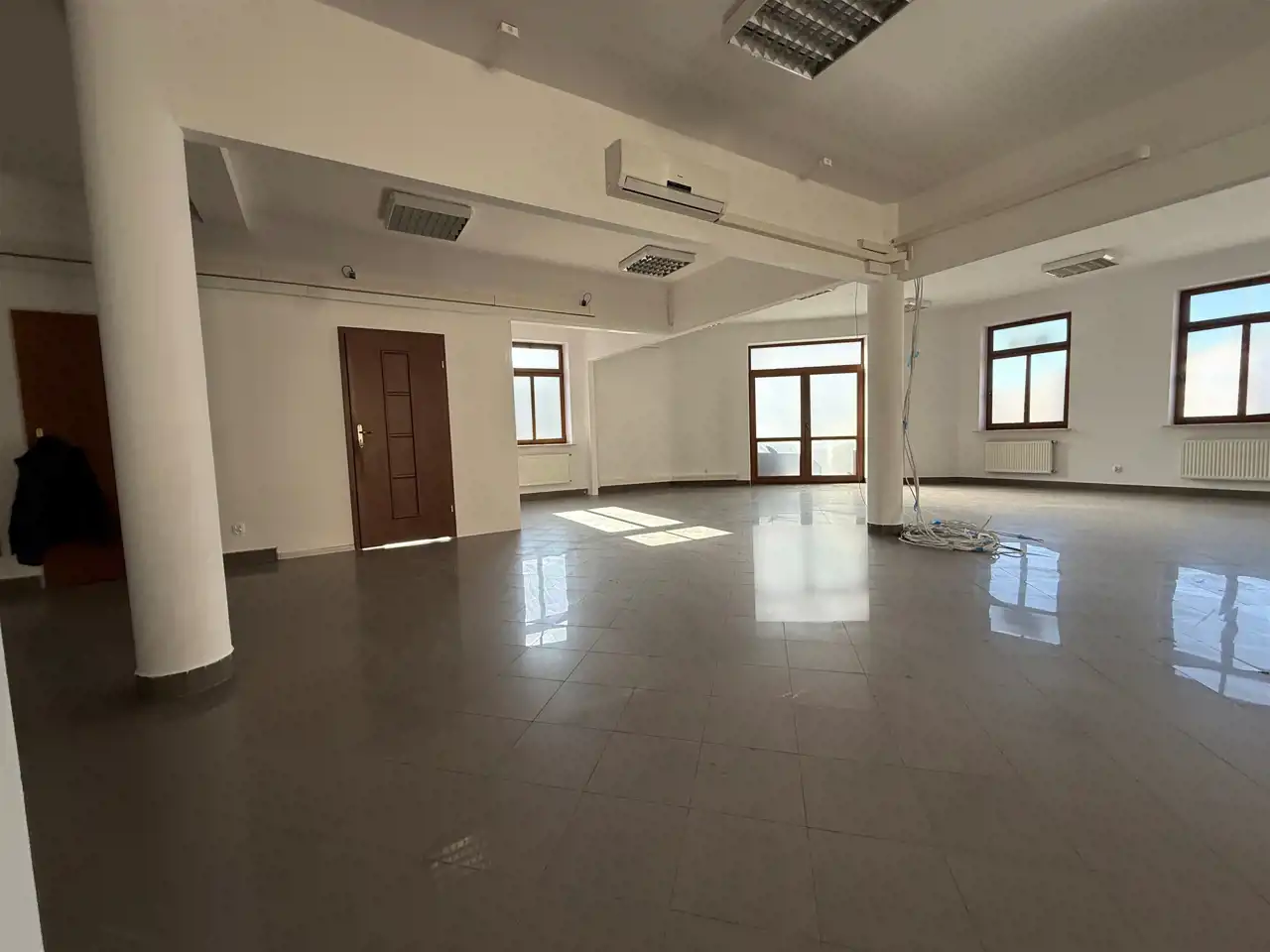 Lokal typu " open space" - sala sprzedaży o powierzchni około 120m2 (ścianki działowe lekkie oraz przeszklenia).