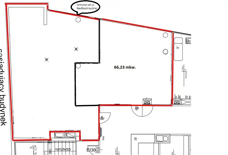 Ponadto budynek znajduje się w ciągu handlowym, który zlokalizowany jest po obu stronach odcinka ul. Nadbystrzyckiej.
