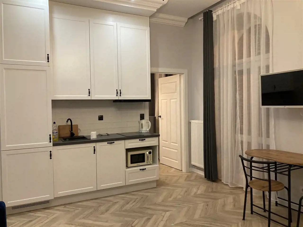 - salonu z aneksem kuchennym,