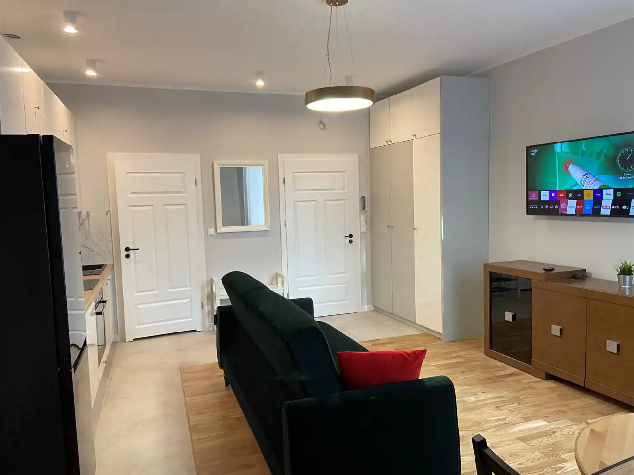 Mieszkania w pełni wyposażone i umeblowane: pralka, lodówka, płyta indukcyjna, piekarnik, zmywarka oraz akcesoria kuchenne (garnki, talerze, sztućce), telewizor 55',