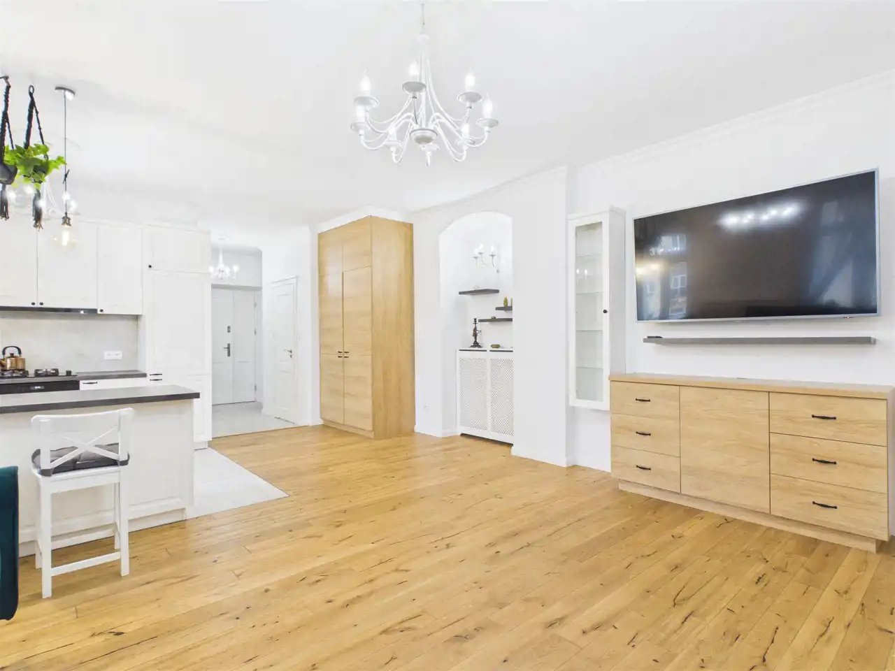 Funkcjonalnie, nowocześnie i z wyraźnym charakterem. To mieszkanie ma styl i spójność – nie jest przypadkową aranżacją.