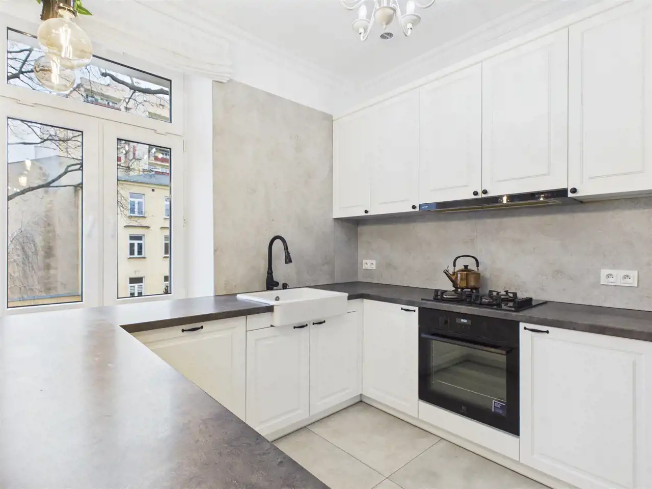 Lokal usytuowany jest na 2. piętrze zrewitalizowanej i docieplonej kamienicy. Mieszkanie jest bardzo ciche – okna wychodzą na wewnętrzny dziedziniec, a dodatkowe ocieplenie stropu i podłóg (10 cm izolacji) zapewnia wysoki komfort akustyczny i termiczny. Pomieszczenia zostały obniżone do optymalnej wysokości ok. 2,9 m - idealne kompromis między poczuciem przestrzeni a ekonomią.