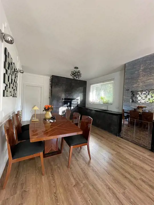 Oświetlenie w mieszkaniu pozostaje na wyposażeniu, zakupione w ekskluzywnym salonie oświetlenia, plafony wykonane z forniru.