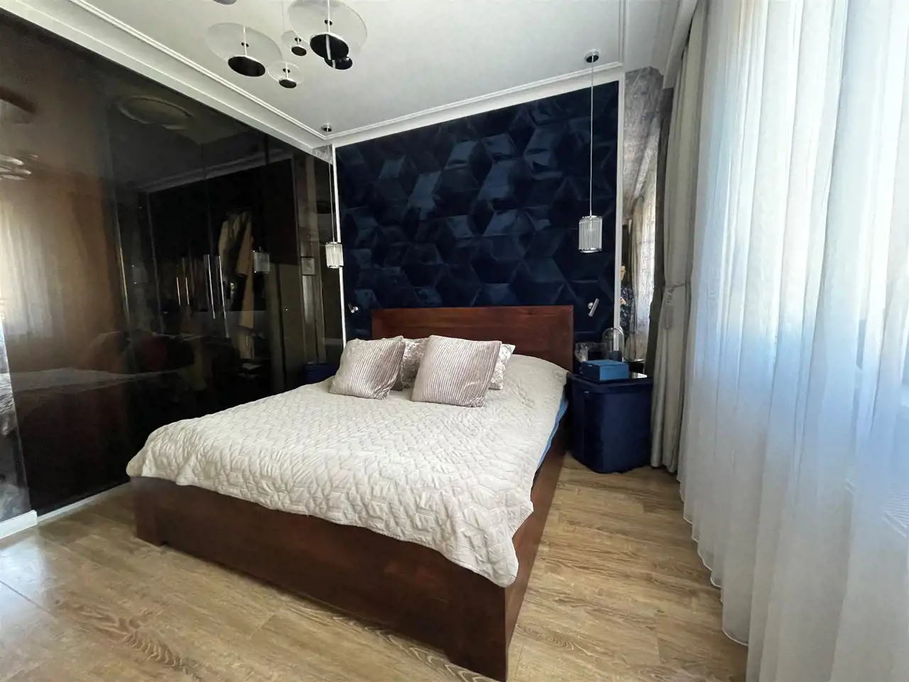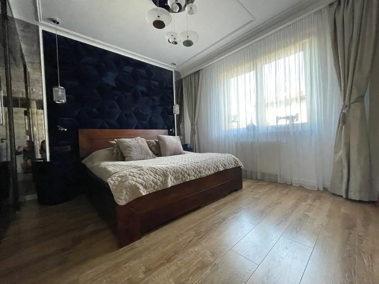 Główna sypialnia po kapitalnym remoncie w 2024 roku, wykonano ścianę w panele tapicerowane, wykonano gniazdka, USB, oświetlenie nocne.