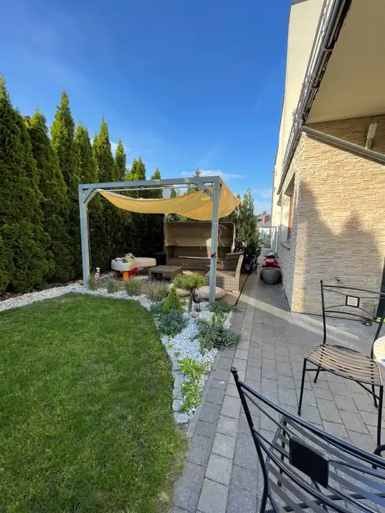 Do wyłącznej dyspozycji ładnie zagospodarowany ogródek ponad 150 mkw, z częścią wypoczynkową, rekreacyjną, dużo nasadzeń, wysokie tuje wzdłuż granicy działki gwarantują prywatność.