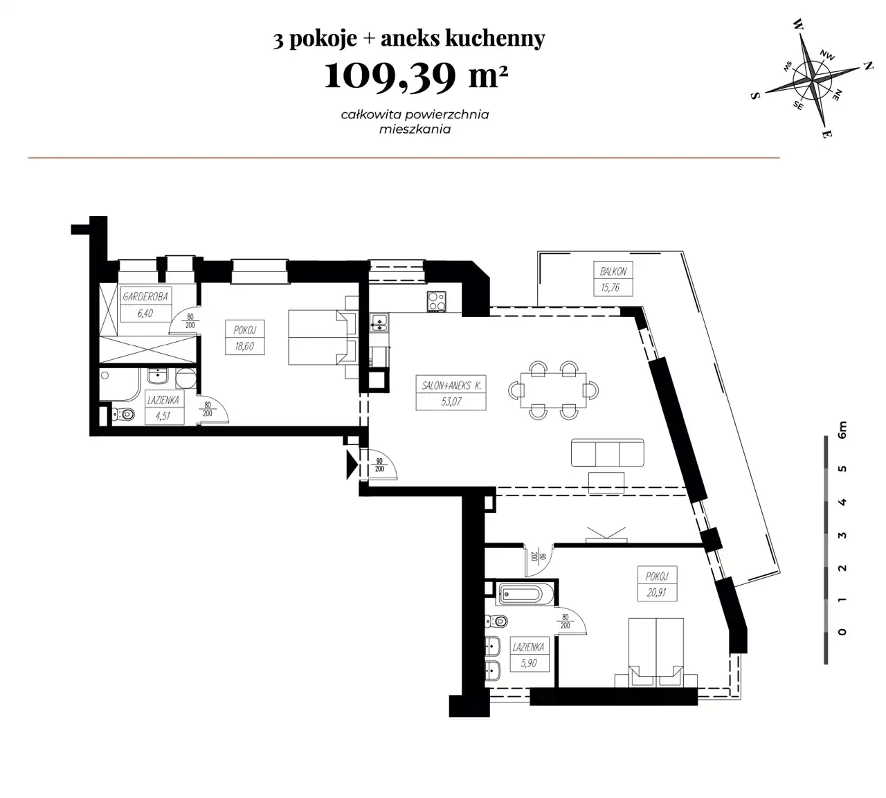 - Charakterystyka mieszkania 109.39 m2, 3 pokoje