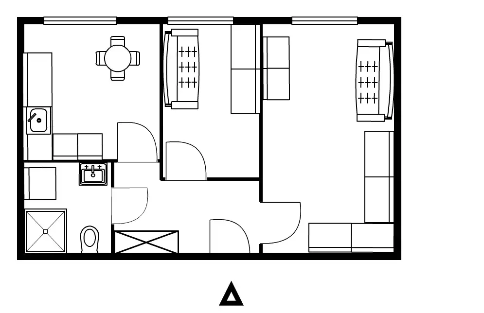 - Charakterystyka mieszkania 34.54 m2, 2 pokoje