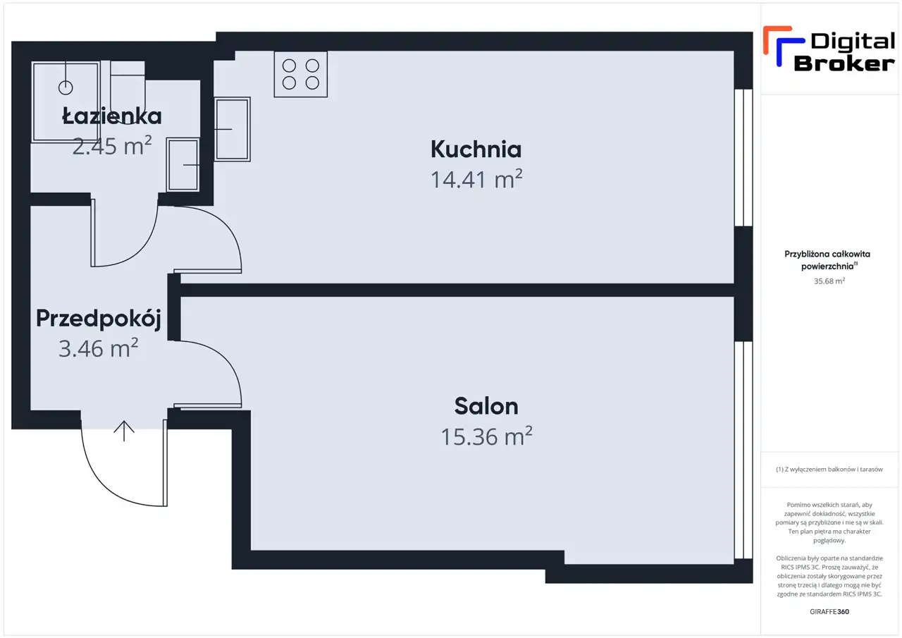 - Charakterystyka mieszkania 35 m2, 2 pokoje