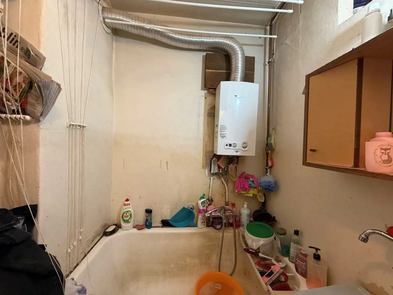 Ogrzewanie z sieci miejskiej, ciepła woda z piecyka gazowego.