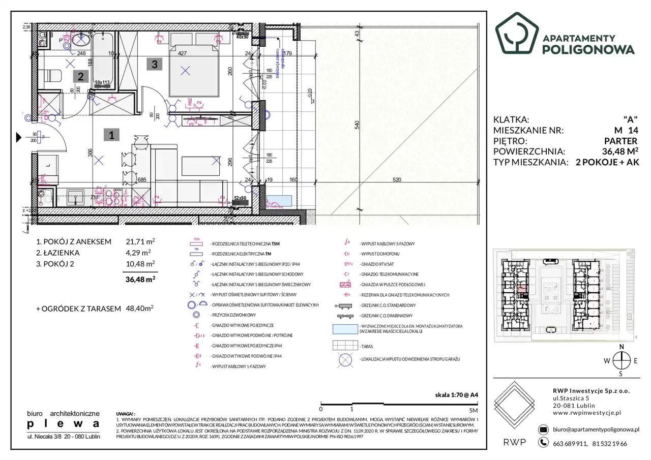 - Charakterystyka mieszkania 36.48 m2, 2 pokoje