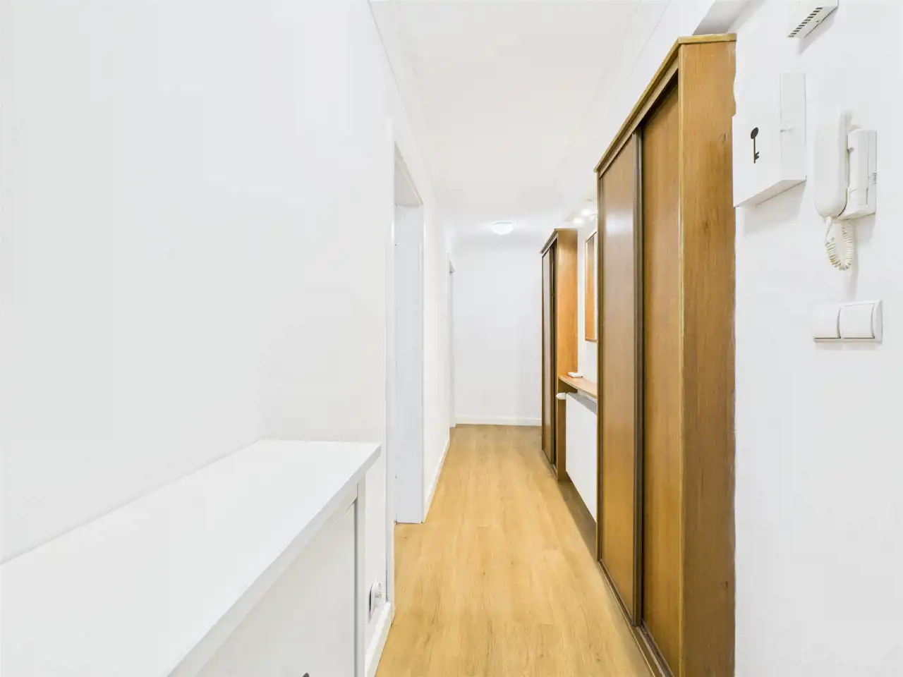 przedpokój z dwiema szafami w zabudowie.
