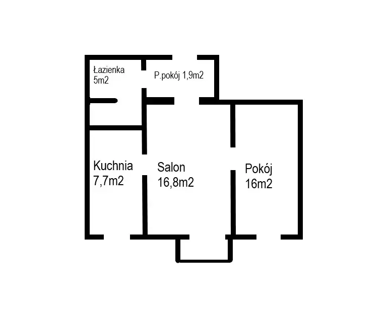 Kuchnia ma powierzchnię 7,7m2, łazienka – 5m2, a przedpokój – 1,9m2.
