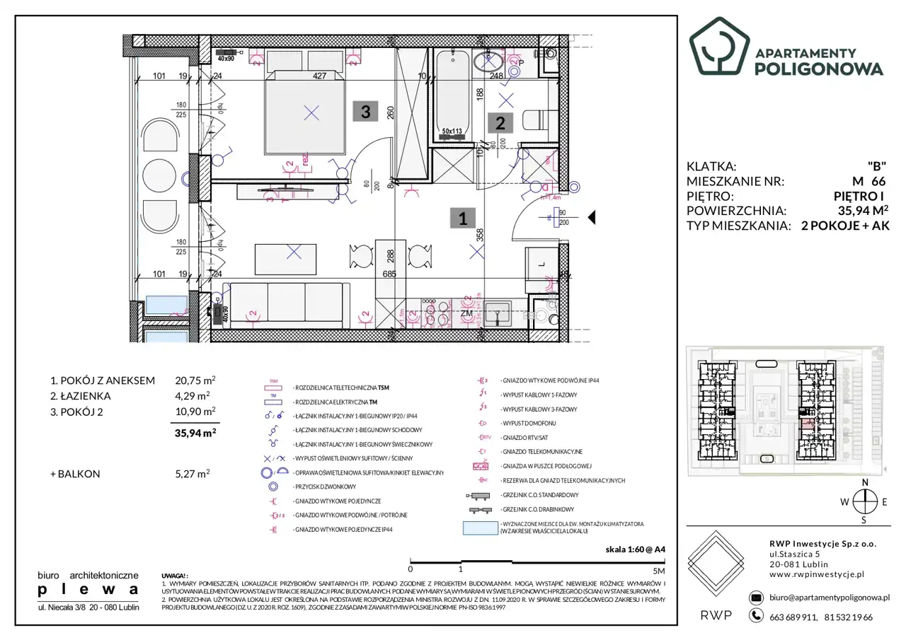 - Charakterystyka mieszkania 35.94 m2, 2 pokoje