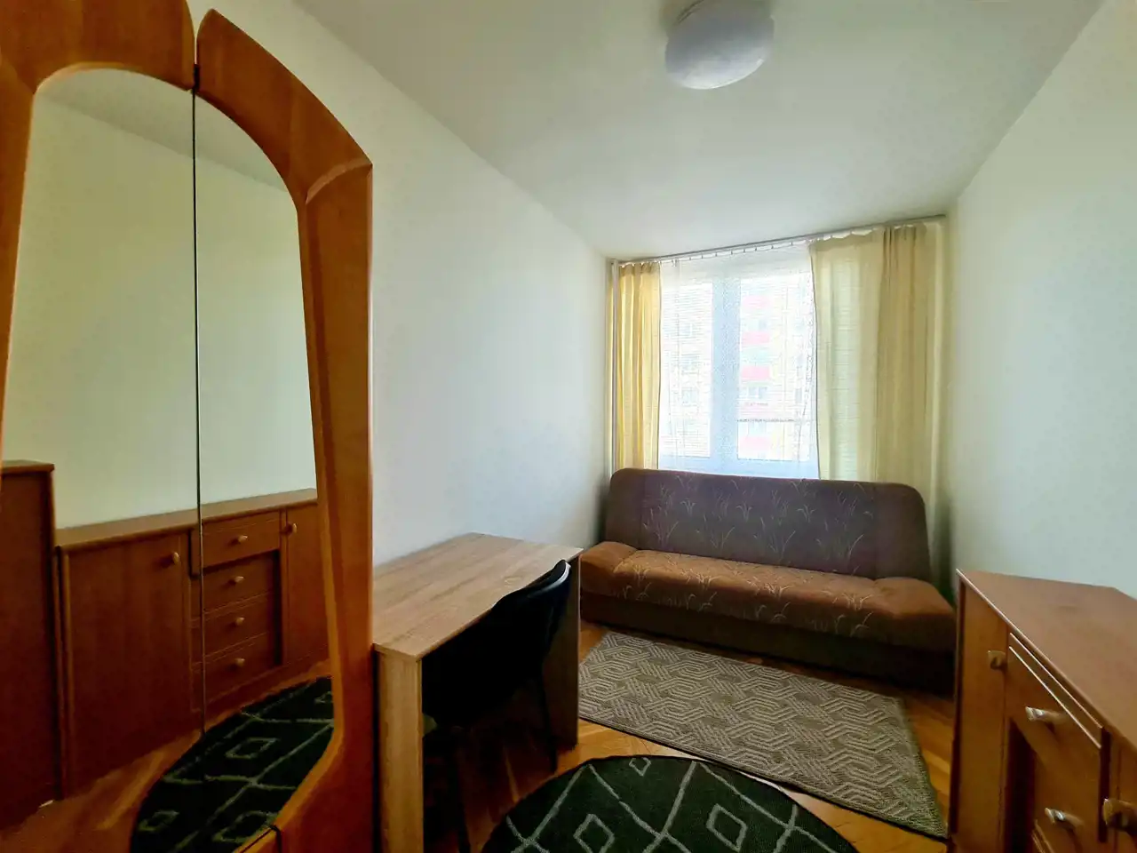 Jeden pokój posiada balkon i jest w pełni umeblowany. Drugi pokój osobny, nieprzejściowy, z wejściem bezpośrednio z przedpokoju. Kuchnia wyposażona w niezbędne sprzęty. łazienka razem z Wc