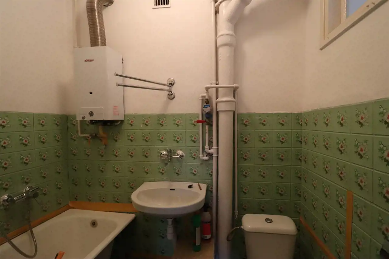 Ogrzewanie z sieci miejskiej, ciepła woda z piecyka gazowego.