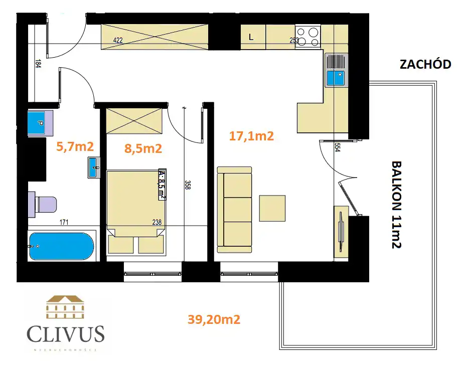 - Charakterystyka mieszkania 39.2 m2, 2 pokoje