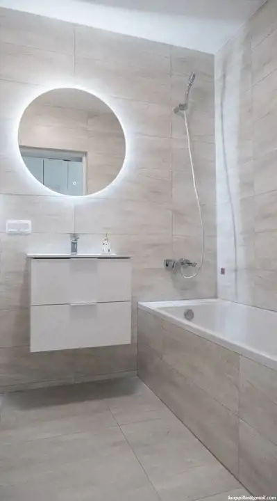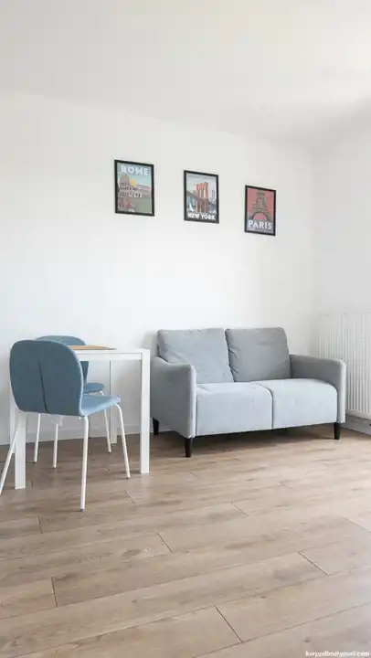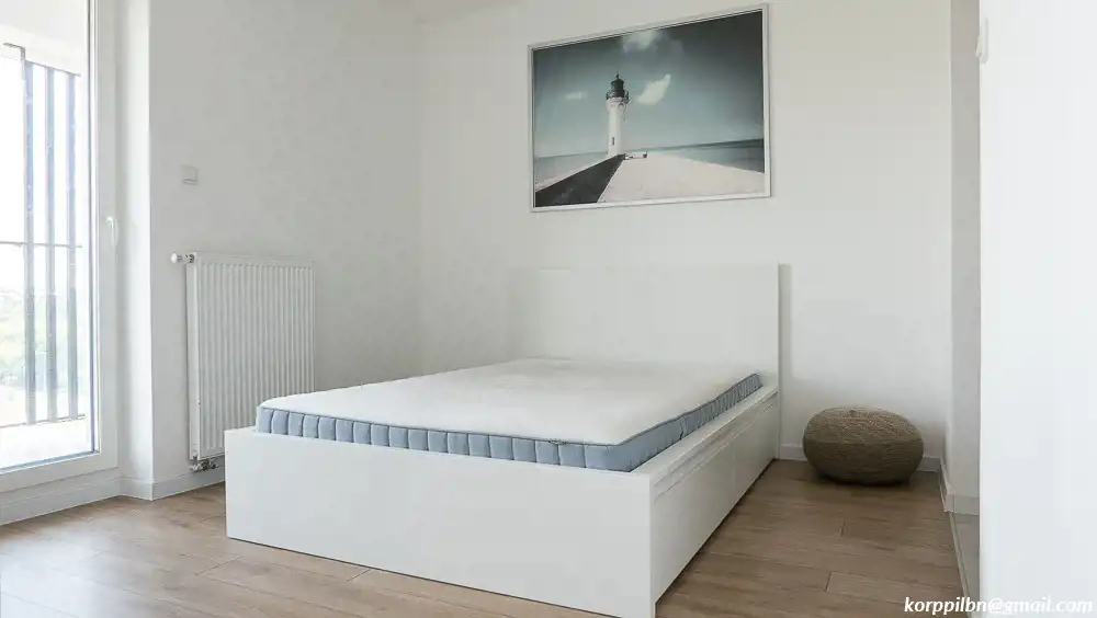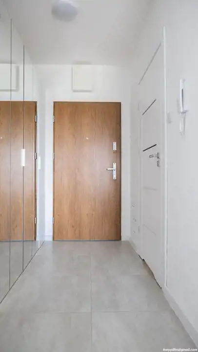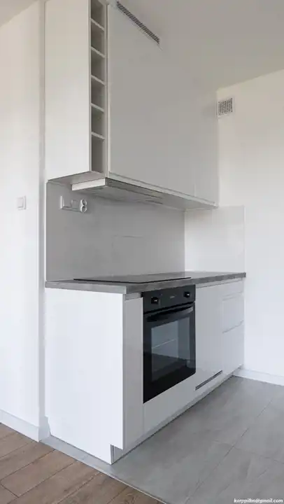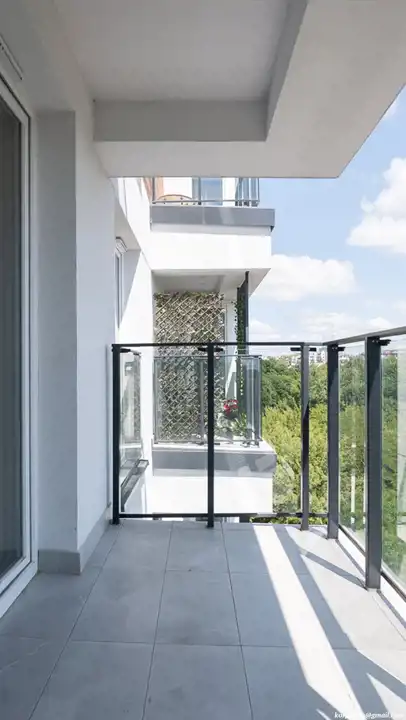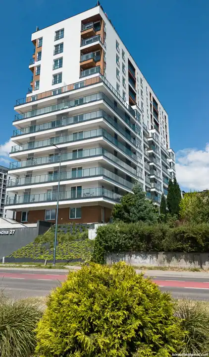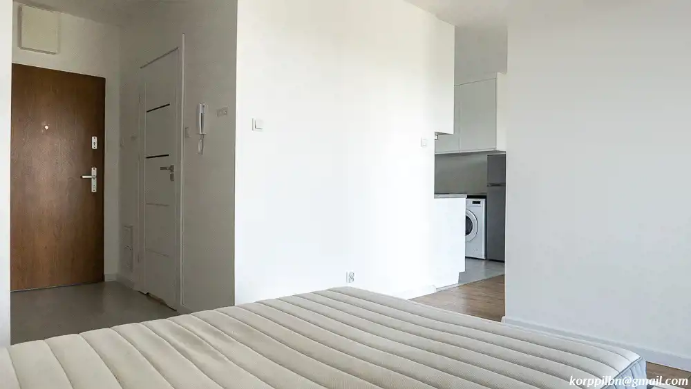Salon z aneksem kuchennym: zabudowa kuchenna, sprzęt AGD (lodówka, piekarnik, płyta indukcyjna, zmywarka, okap, pralka), sypialnia, łazienka z wc (wanna), duży balkon. Do dyspozycji mieszkańców prywatnego ogrodu pełny bogatej zieleni.