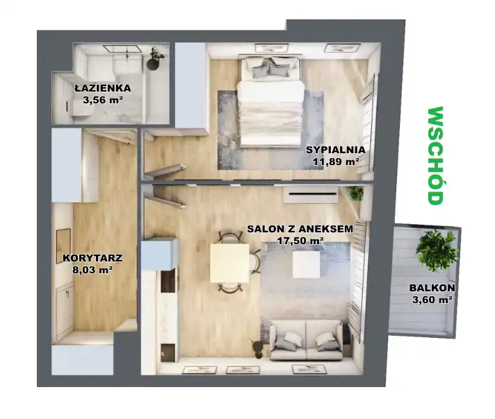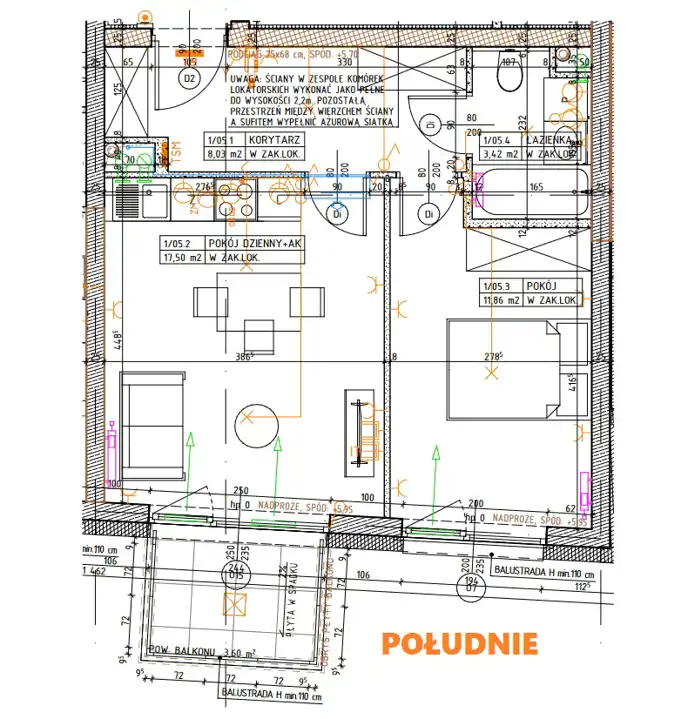 - Rozkład mieszkania 1p piętro