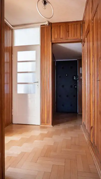 Okna drewniane nowego typu, na podłogach parkiet, terakota. Ogrzewanie miejskie, CWU z piecyka gazowego. Mieszkanie było częściowo remontowane ok. 8 lat temu (położenie parkietu, wymiana piecyka gazowego, częściowo instalacji elektrycznej.)