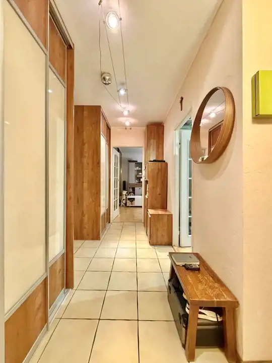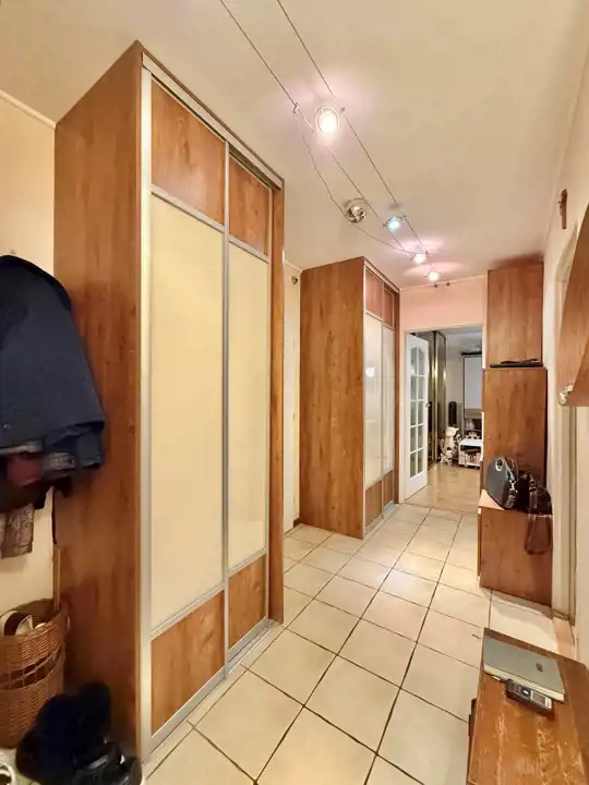 Piętro 1/10, powierzchnia 51,96 m2 składa się z dużego ustawnego salonu z balkonem, sporej sypialni, dużej kuchni, łazienki z WC oraz przedpokoju. Mieszkanie jest jasne, wystawa okien na stronę zachodnią. W salonie oraz w przedpokoju znajdują się duże szafy w zabudowie. Kuchnia w kwadracie, wyposażona w zmywarkę, kuchnię gazową z piekarnikiem, dużą lodówko-zamrażarkę.