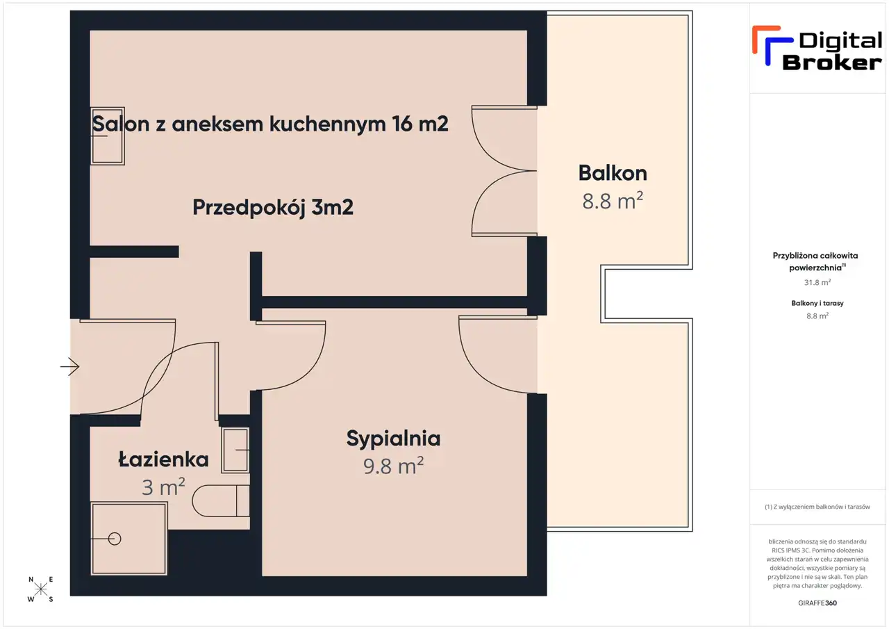 Mieszkanie o łącznej powierzchni 30,68 m² (sprawdź układ na załączonym planie oraz spacerze wirtualnym) składa się z: