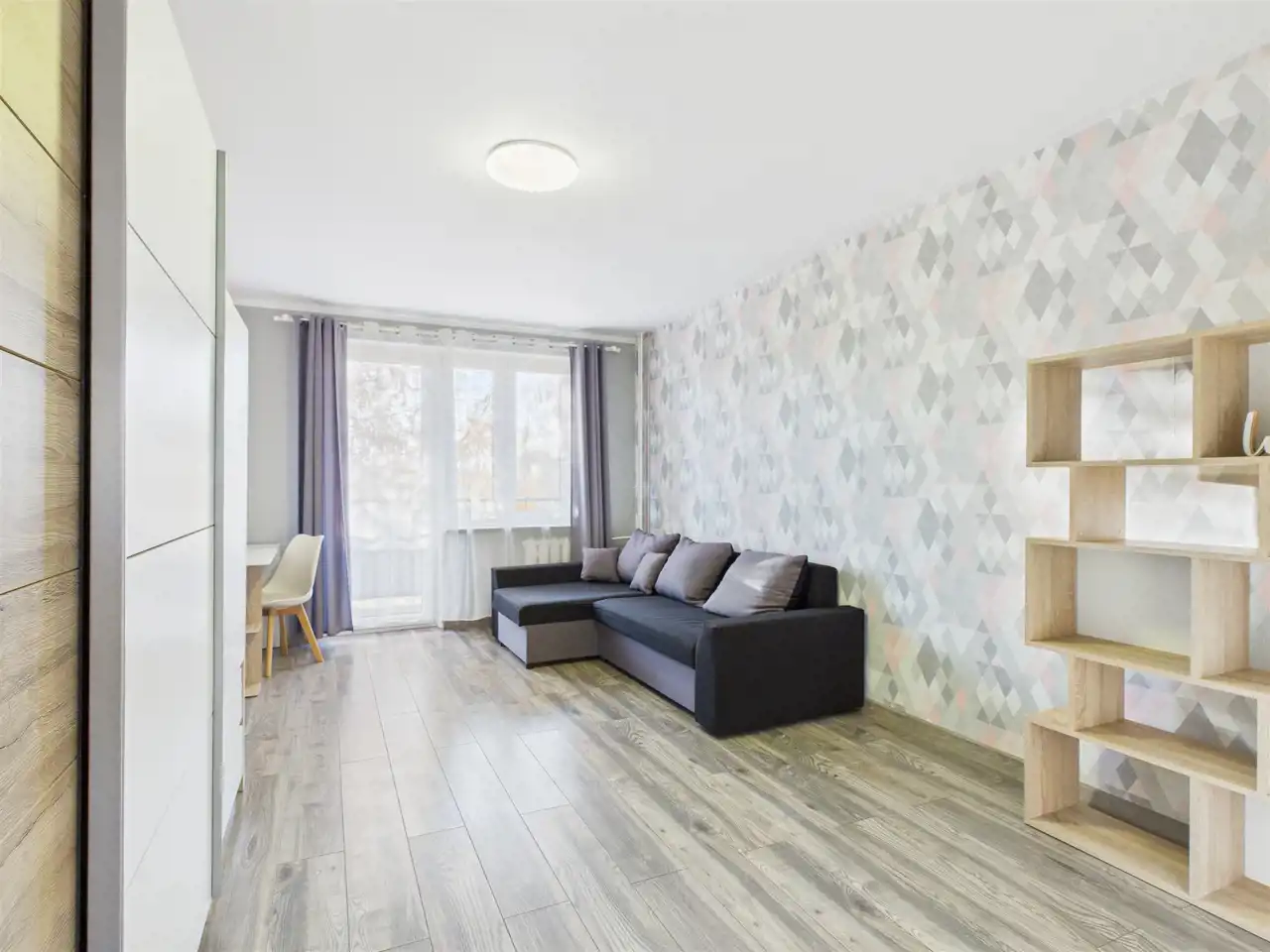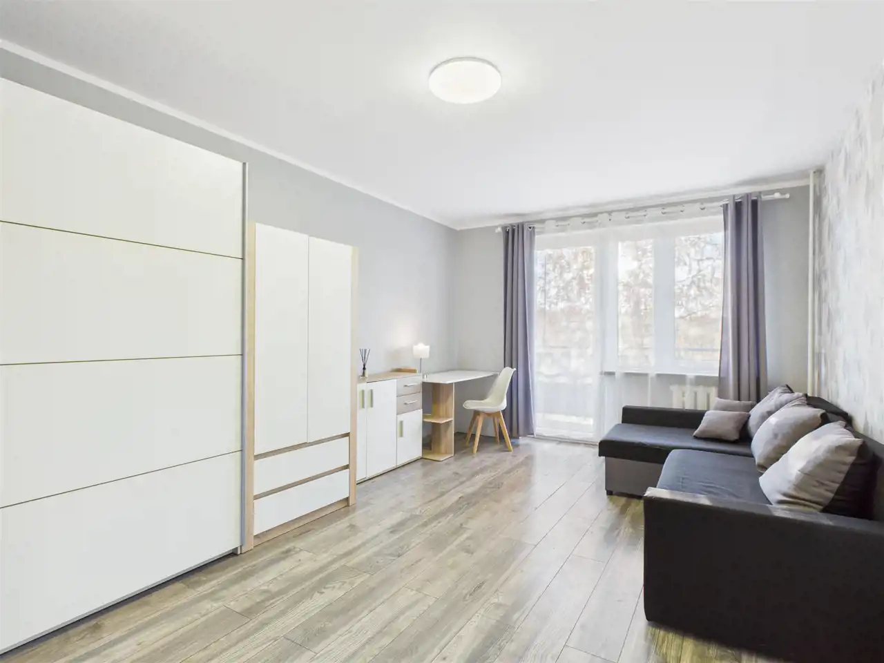 - salon z wyjściem na balkon z widokiem na zieleń (strona południowo-zachodnia),