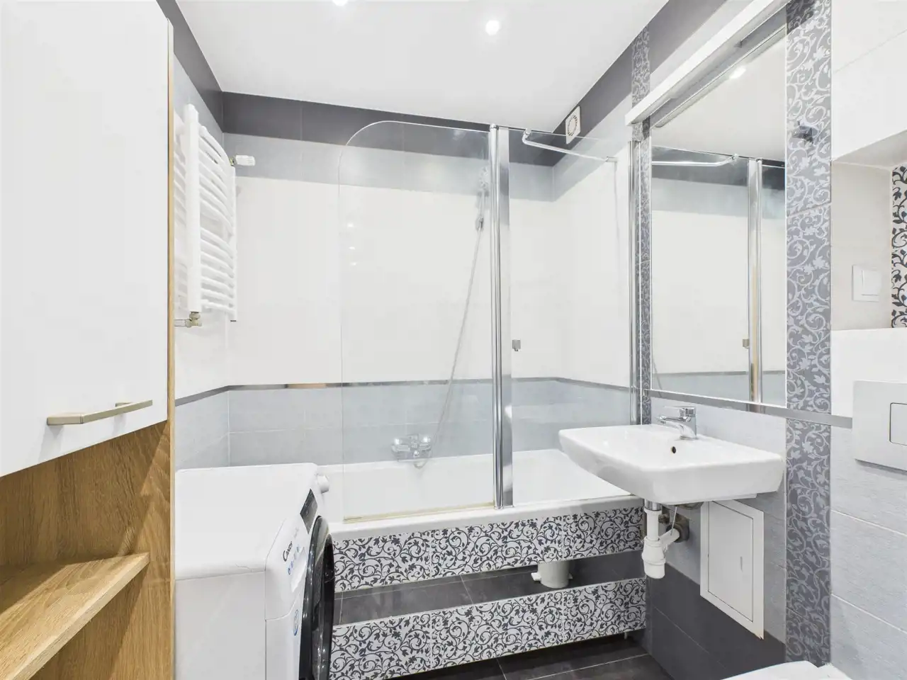 - łazienka z wanną z funkcją prysznica,