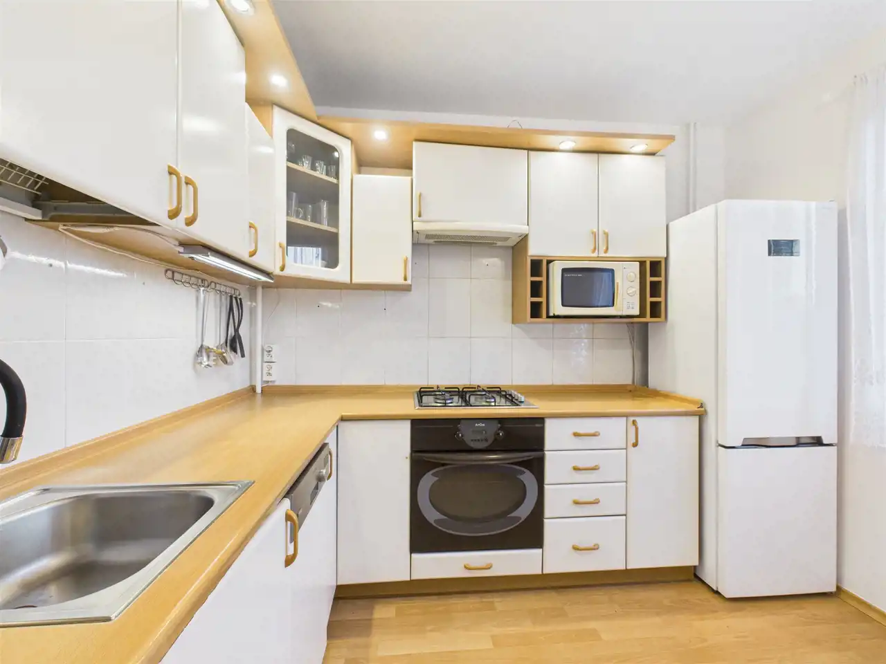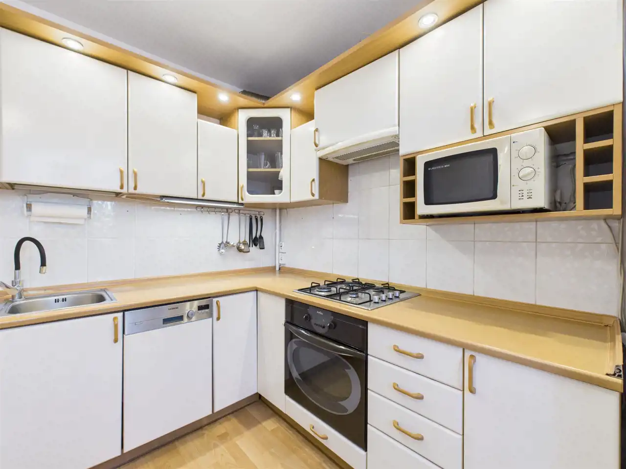 - w pełni wyposażona kuchnia (kuchenka gazowa, piekarnik, lodówka, zmywarka),
