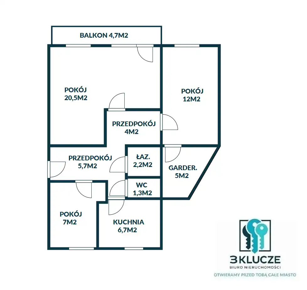 - Charakterystyka mieszkania 64.5 m2, 3 pokoje