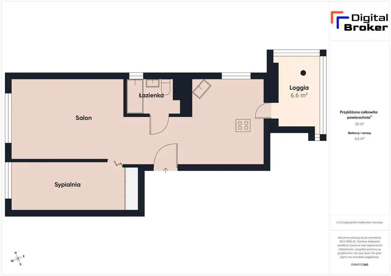 - Charakterystyka mieszkania 50 m2, 2 pokoje