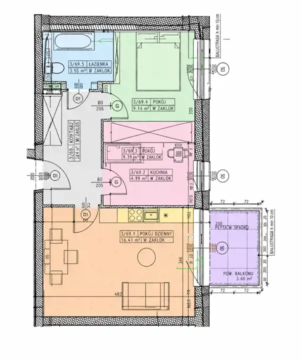 - Rozkład mieszkania 3p piętro