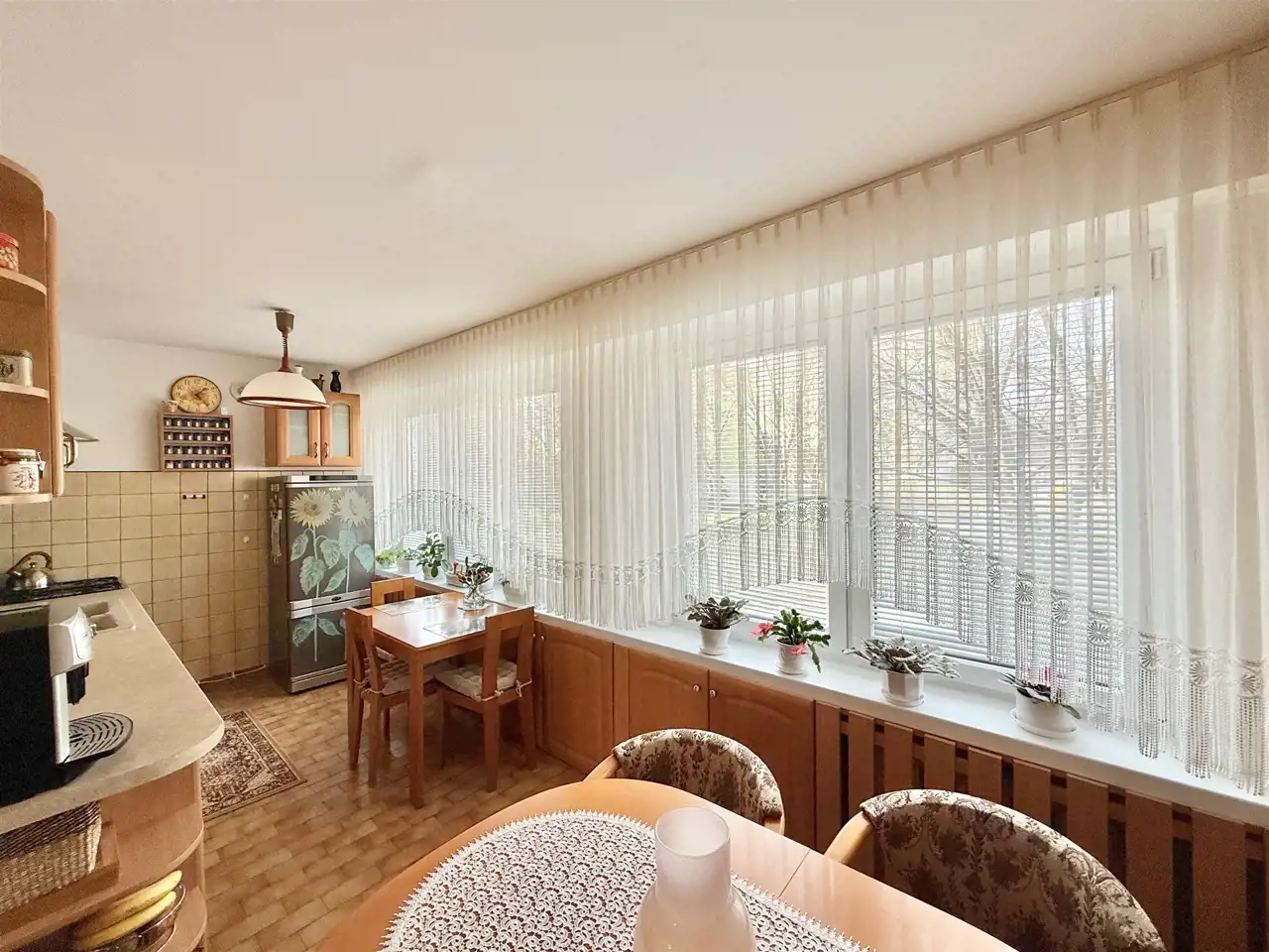 Wystawa okien z sypiani oraz salonu na stronę południową z kuchni na stronę północną