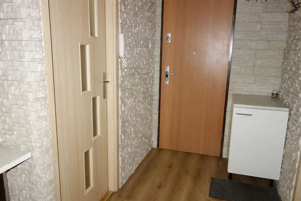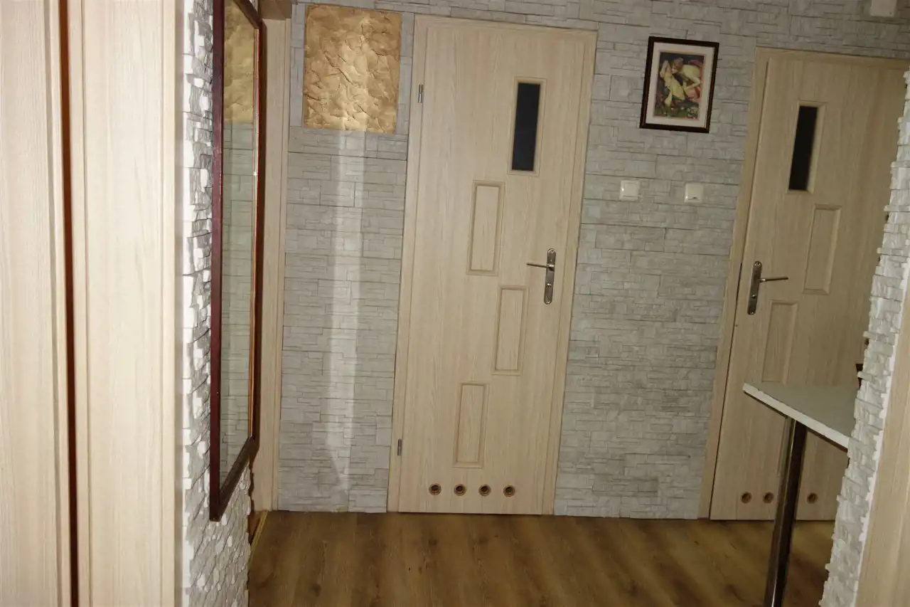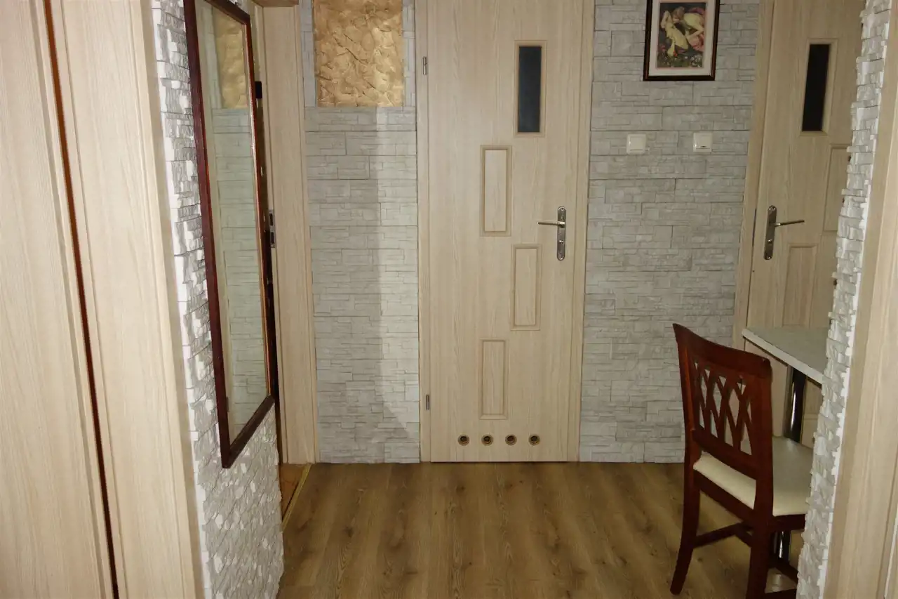 Nieruchomość o powierzchni całkowitej 62,44 m2 składa się z 3 nieprzechodnich pokoi (jeden z balkonem), oddzielnej kuchni, łazienki z prysznicem i WC oraz przedpokoju.