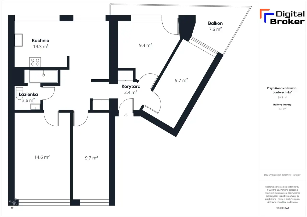 Na powierzchni 68,50 m² znajdują się: (sprawdź załączony rzut)