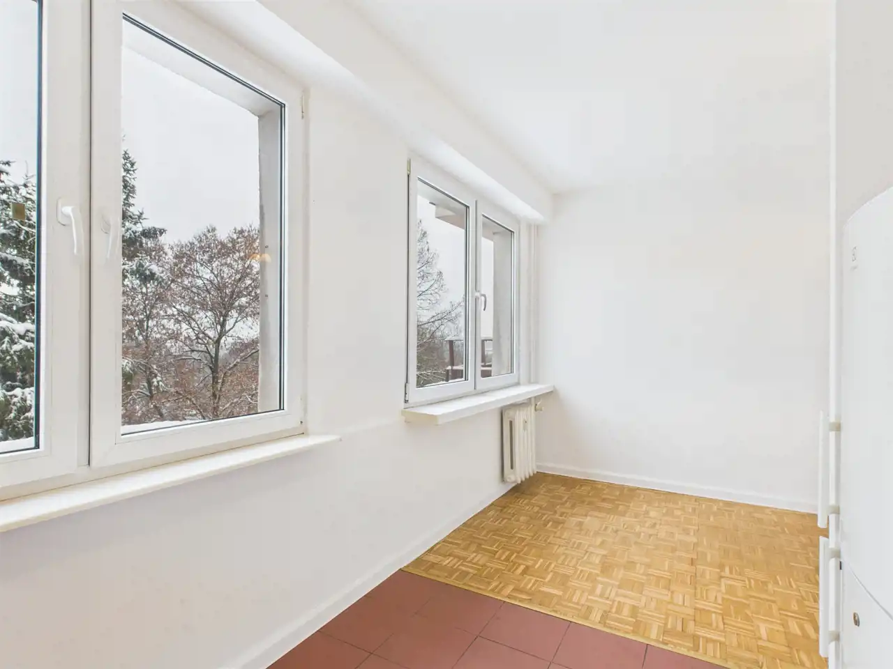 - okna PCV z widokiem na zieleń,