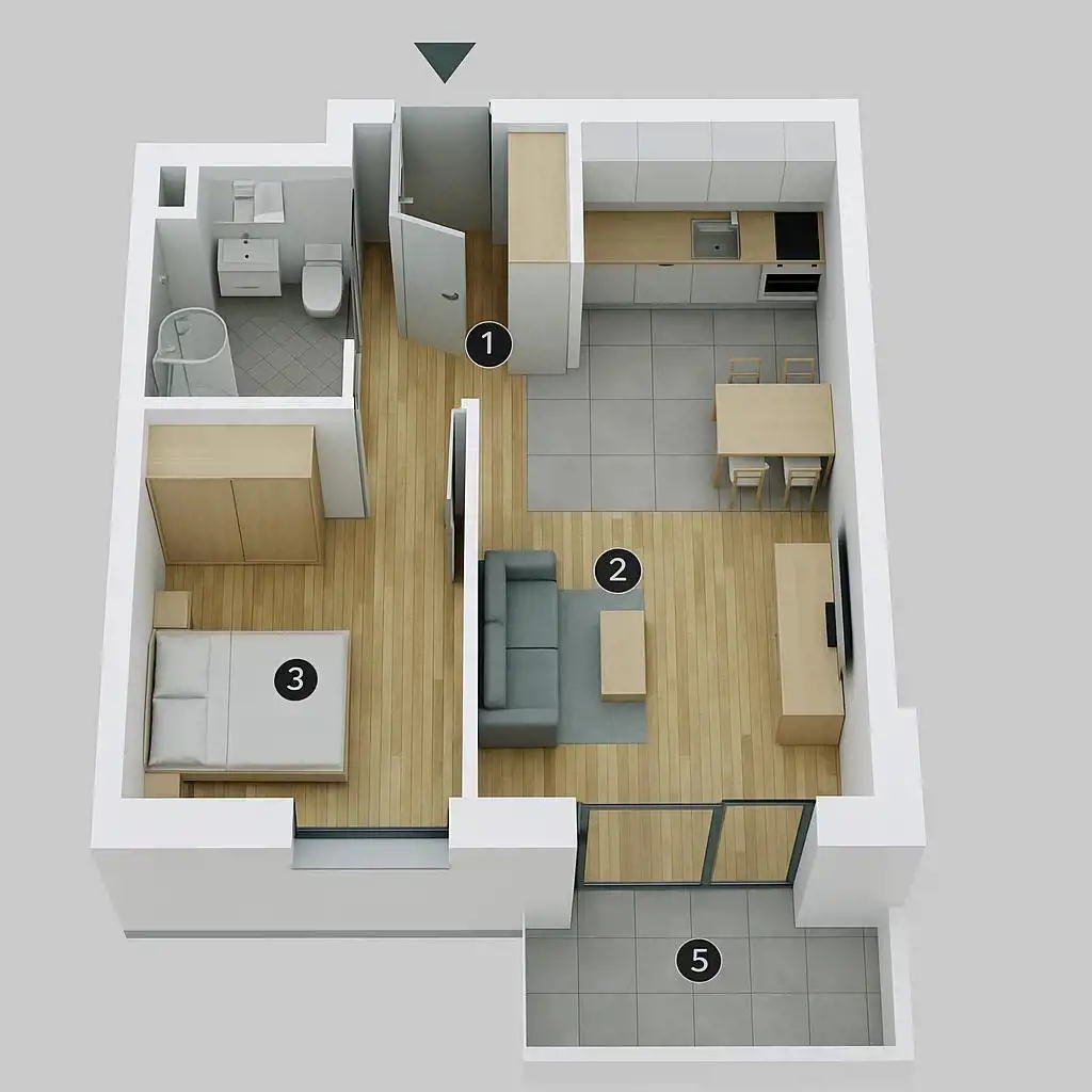 - Charakterystyka mieszkania 39.58 m2, 2 pokoje