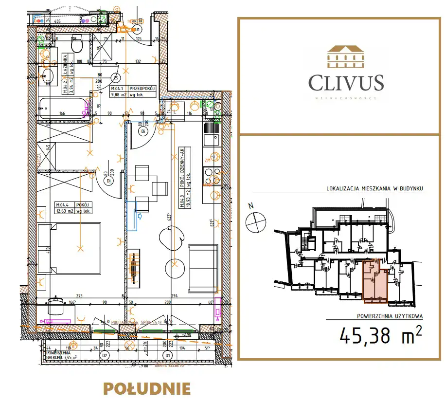 - Charakterystyka mieszkania 45.38 m2, 2 pokoje