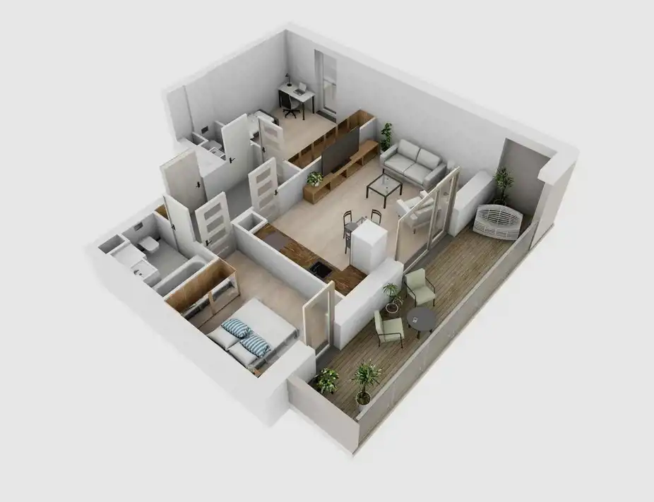 - Funkcjonalny układ pomieszczeń zaprojektowany z myślą o wygodzie.