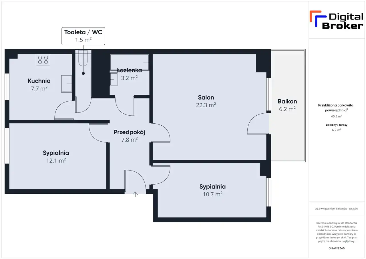 Na 65,5 m² znajdują się (sprawdź rozkład na załączonym planie oraz spacerze wirtualnym):