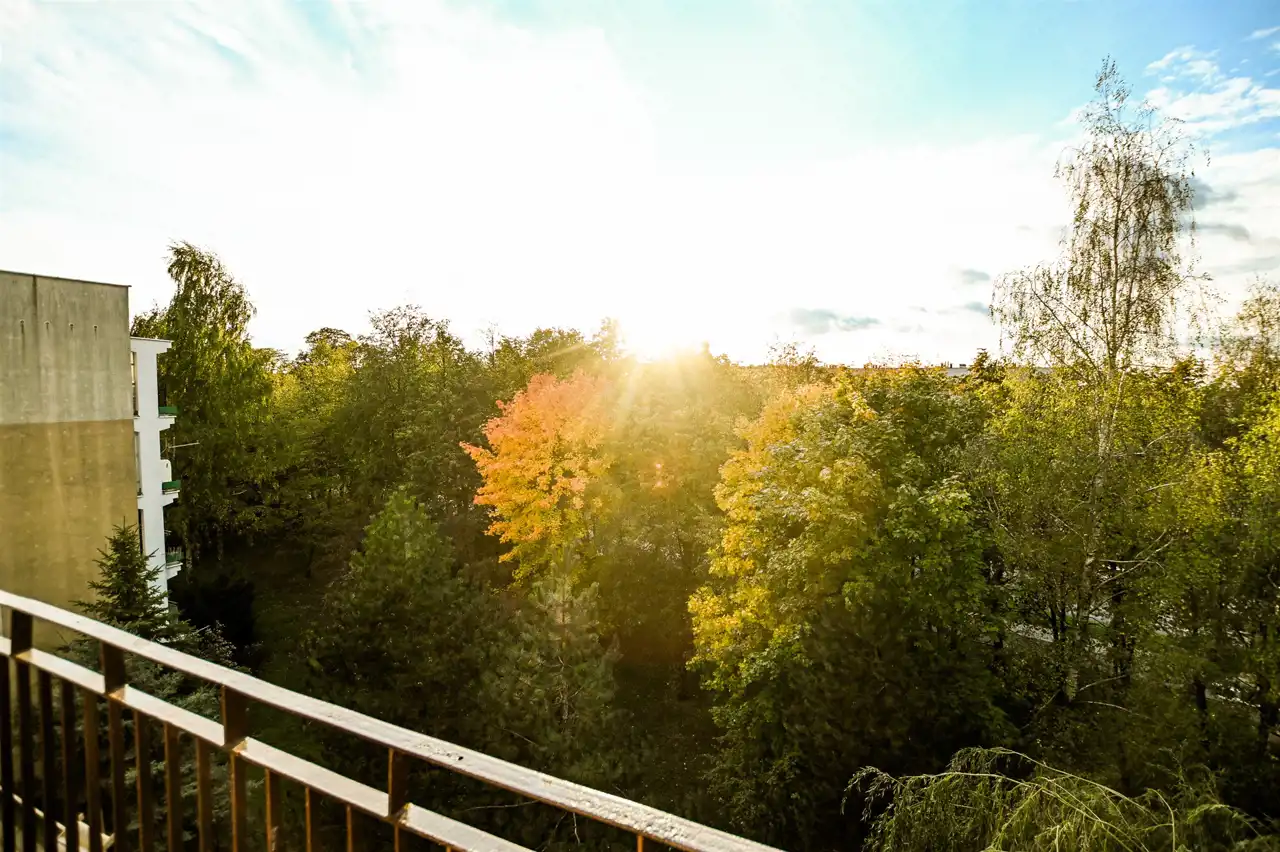 Okna i balkon wychodzą na stronę zachodnio-północną, co zapewnia dobre doświetlenie wnętrz w godzinach popołudniowych i wieczornych. Wysokość pomieszczeń to 2,65 m, co zwiększa komfort i optycznie powiększa przestrzeń.
