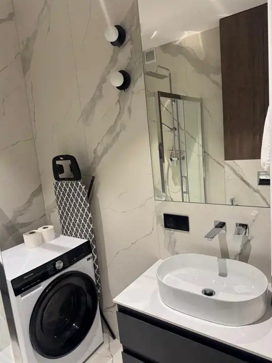 Kompletnie wyposażone – w pełni umeblowane z wysokiej klasy AGD: zmywarka, piekarnik, płyta indukcyjna, okap, pralka i lodówka.