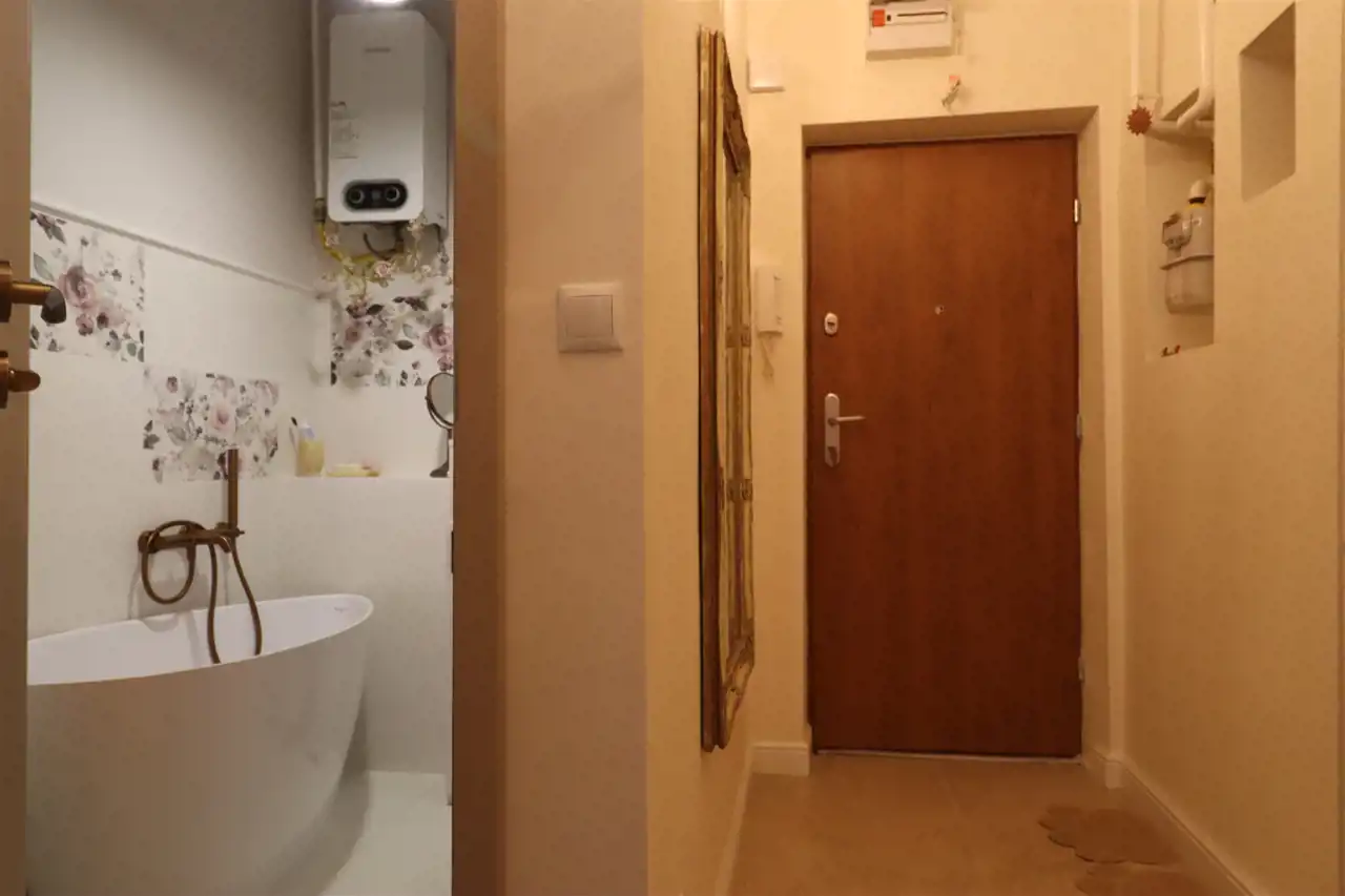 - Media Ogrzewanie: C.O. miejskie; Woda: ciepła - piecyk; Gaz: jest
