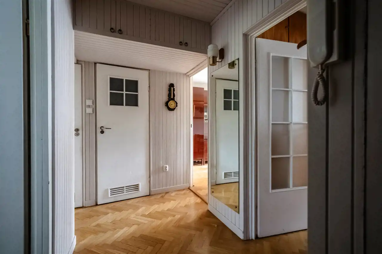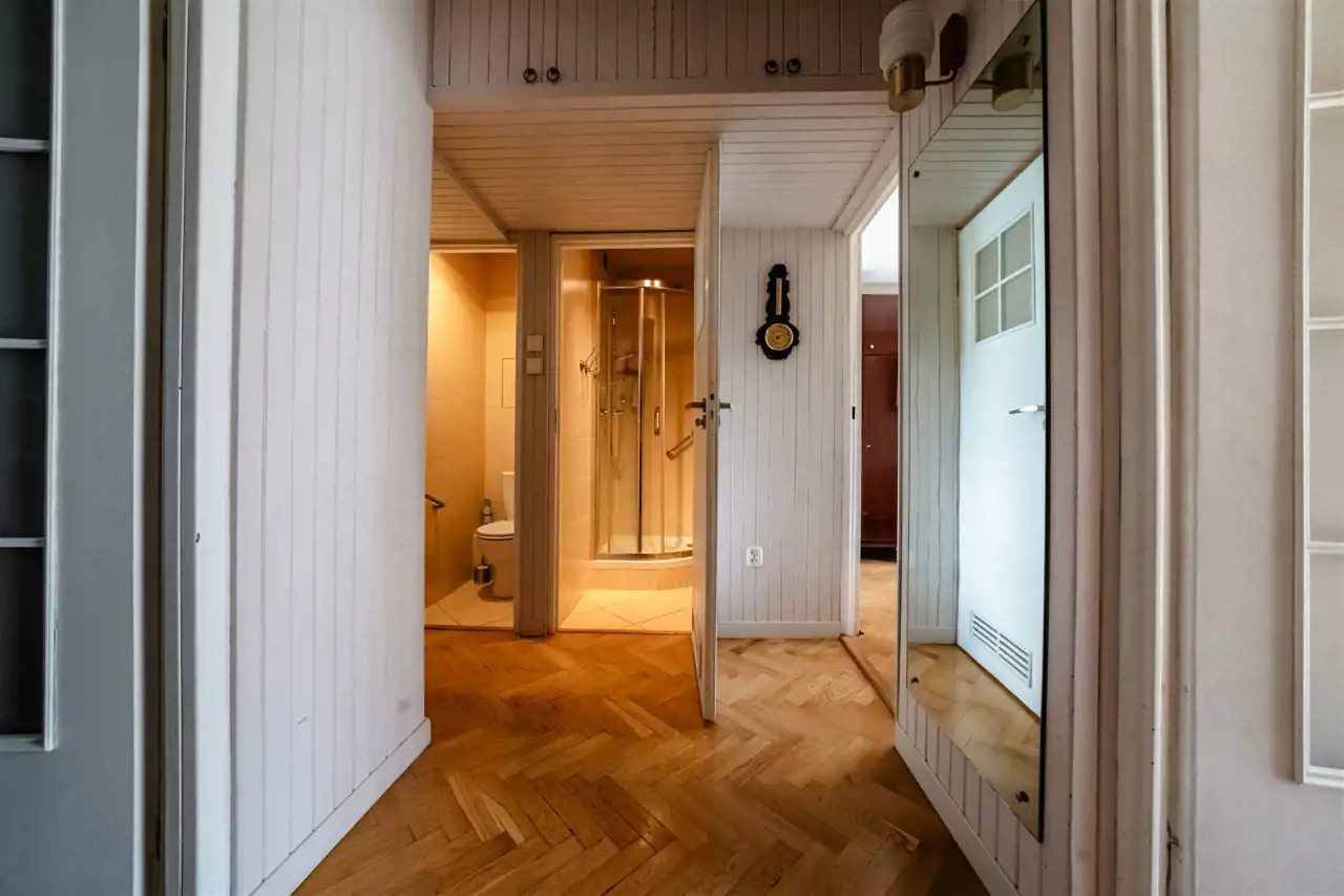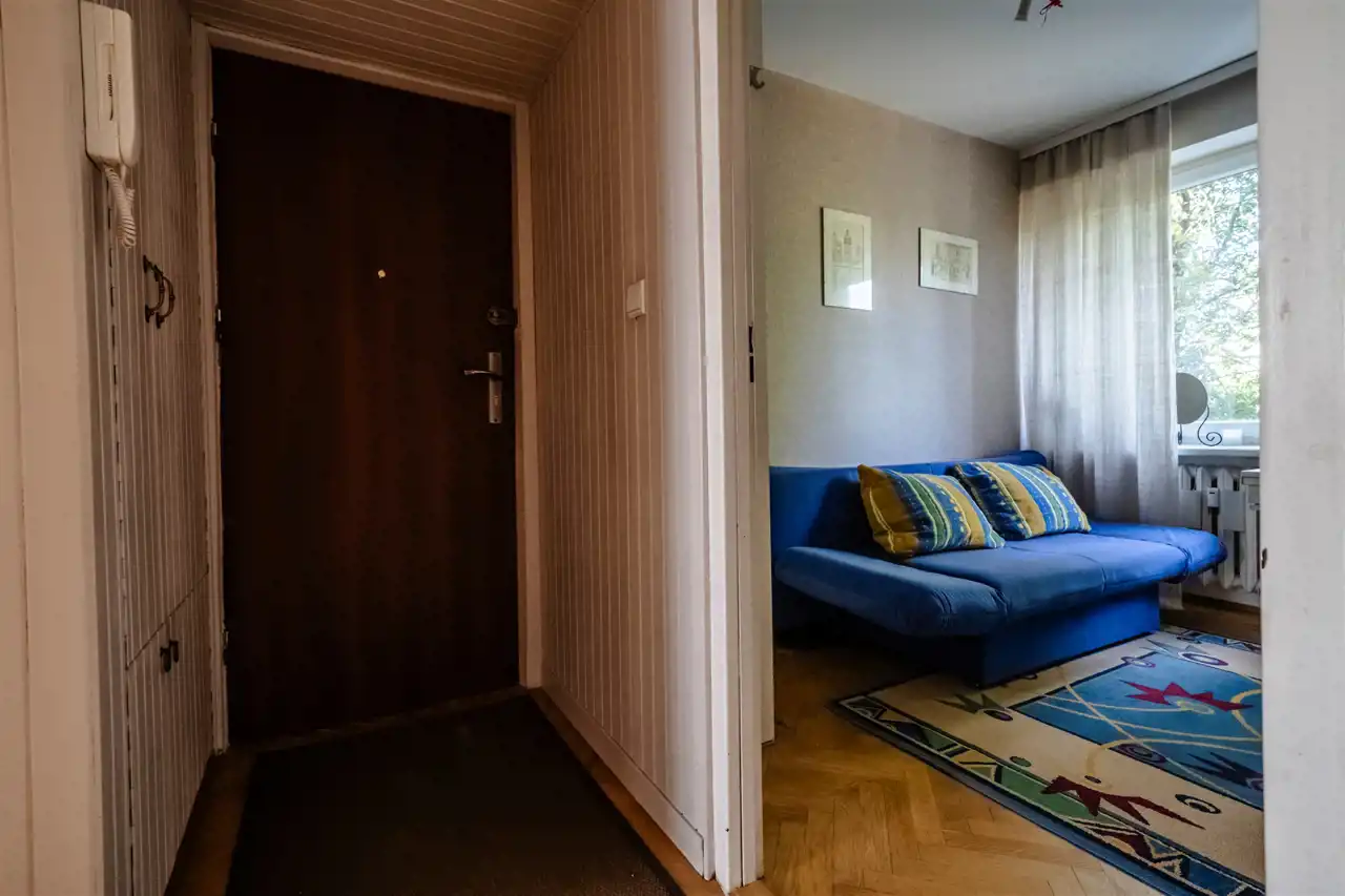 • Bezpieczeństwo i standard: Okna PCV, solidne drzwi antywłamaniowe oraz aż 4 pojemne szafy w zabudowie