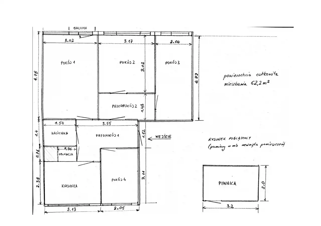- Charakterystyka mieszkania 62.2 m2, 4 pokoje